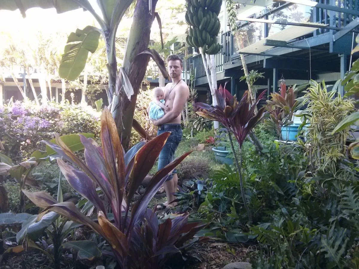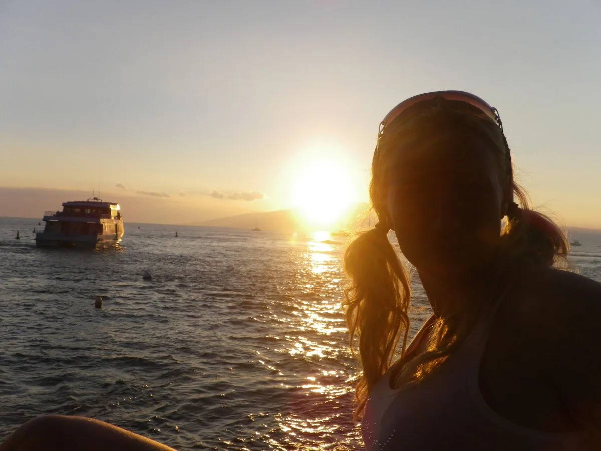Après avoir lunché sur une jolie petite plage où quelques surfers s’amusaient, nous voilà arrivé à notre auberge: le makai Inn. Une chambre plutôt quelconque, avec un très beau jardin illuminé le soir, une vue magnifique sur le port de Lahaina et une propriétaire vraiment freak sur la tranquillité.