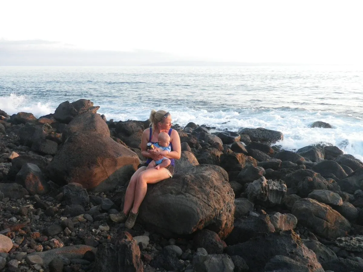 Pour remercier Daphné d’avoir gardé Hector, on décide de lui payer une croisière aux baleines pour qu’elle puisse enfin en voir de près. Mais croyez-moi, un bébé allaité, le mal de mer, un soleil de plomb et une croisière en bateau ne font vraiment pas bon ménage… Quand mon attention n’était pas orientée sur me retenir de vomir, elle était plutôt sur mon bébé pour m’assurer qu’il ne fasse pas une insolation (on a dû l’arroser à plusieurs reprises), ne tombe pas sur le pont, ou pire, en mer! Pas trop relaxant! Regarder les baleines était vraiment le dernier de mes soucis. Au moins, les baleines étaient au rendez-vous et Daphné a pu voir plusieurs baleines à bosses.